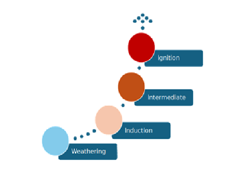 In this stage the primary source of the reagents supporting the reaction are no longer environmental. They are provided by the products of the induction stage reaction. Nitric acid and ferric ions, react with pyrite to create the reagents to catalyse the reaction with the ammonium nitrate.