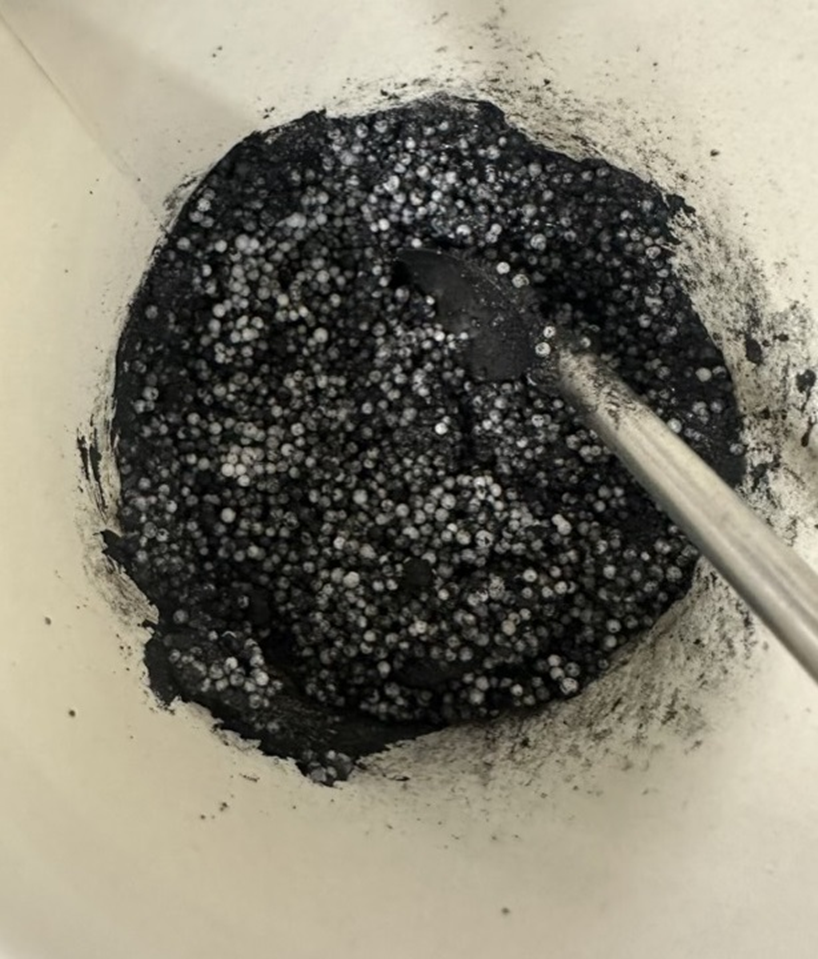 Figure 4 - 100 grams of ANFO, 30grams of sample 2025-RG-02-GM2 and 5 grams of water mix.