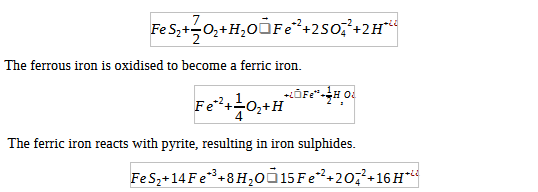 Where pyrite exists, it is therefore possible that the following reagents will have accumulated: pyrite, sulfuric acid, ferric and ferrous sulphates. This is the same process that causes acid my drainage.