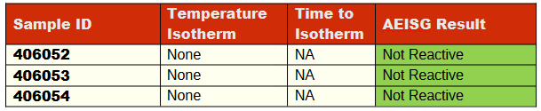All 3 tests were not identified to be reactive in accordance with the AEISG Code.