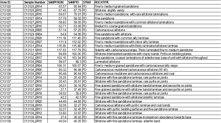 Figure 3 – Sample C13138-ER10 observation of core showing coal and pyrite: