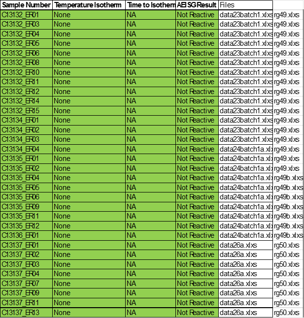 • Test data files: rga50.xlxs, templog48.csv, data26a.csv, data24batch1.xlxs and 105Samples_to 16th November.xlsx