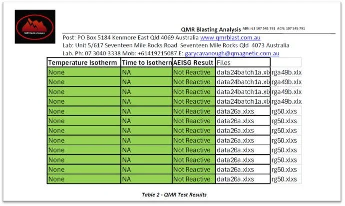 All samples were found to be not reactive when tested as per the AEISG Code of Practice and the QMR Test.