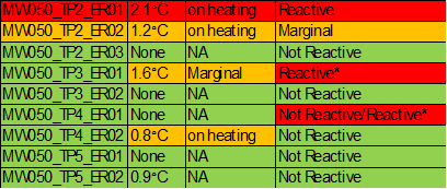 • MW050_TP3_ER01 1.2°C therefore AEISG Marginal.
